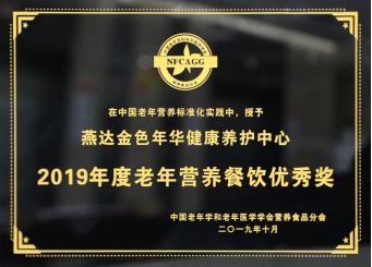 2019年10月,燕达金色年华健康养护中心被中国老年学和老年医学学会营养食品分会评为“2019年度老年营养餐饮优秀奖”,并授予奖牌和证书。