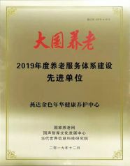 2018年12月,在国家养老网、国声智库文化发展中心、中国国际中老年艺术节组织委员会联合举办“大国养老2018年度养老服务体系建设先进单位”公益评选活动中,燕达金色年华健康养护中心被授予“大国养老2018年度养老服务体系建设先进单位”荣誉称号。
