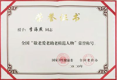 2020年,燕达国际健康城副总裁李海燕被国家卫生健康委、全国老龄办评选为“全国‘敬老爱老助老模范人物’”。