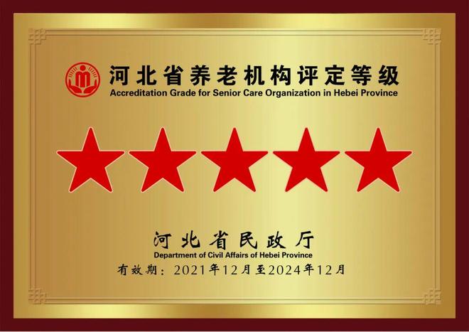2024年12月9日,燕达金色年华健康养护中心在河北省2024年度养老机构等级评定中,被复评为“五级养老机构”。