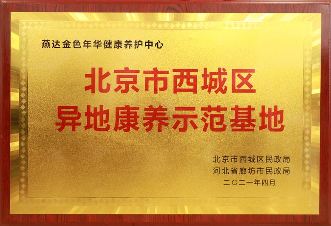 2021年,北京市西城区民政局和廊坊市民政局联合授予燕达养护中心“北京市西城区异地康养示范基地”,以鼓励燕达养护中心在养老工作协同发展方面做出的突出贡献。
