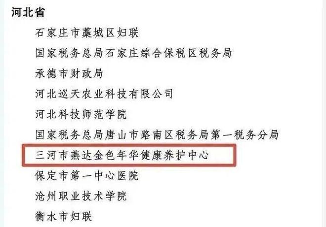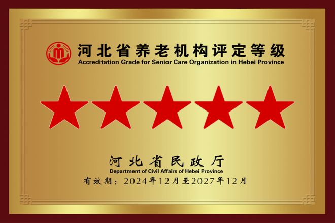 2025年1月,河北省民政厅将燕达金色年华健康养护中心评定为“五级养老机构”。