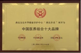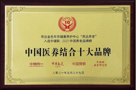 2020年8月27日,燕达金色年华健康养护中心在《中国国际养老产业博览会中国养老十大品牌评选》活动中,喜获“中国医养结合十大品牌”殊荣。