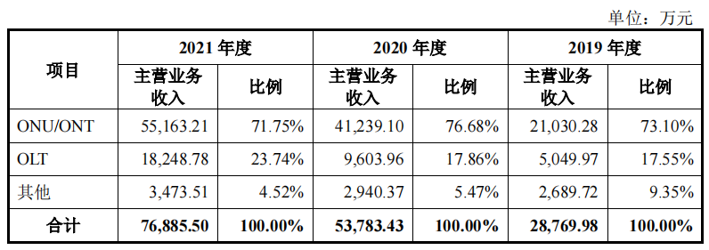 芯德科技主营产品包括光网络单元(ONU/ONT)、光线路终端(OLT),营收占比均超过90%。产品广泛应用于家庭及企业宽带接入、工业互联网、视频监控、平安城市、智能电网(电力配网自动化)、政府安全网络等场景。